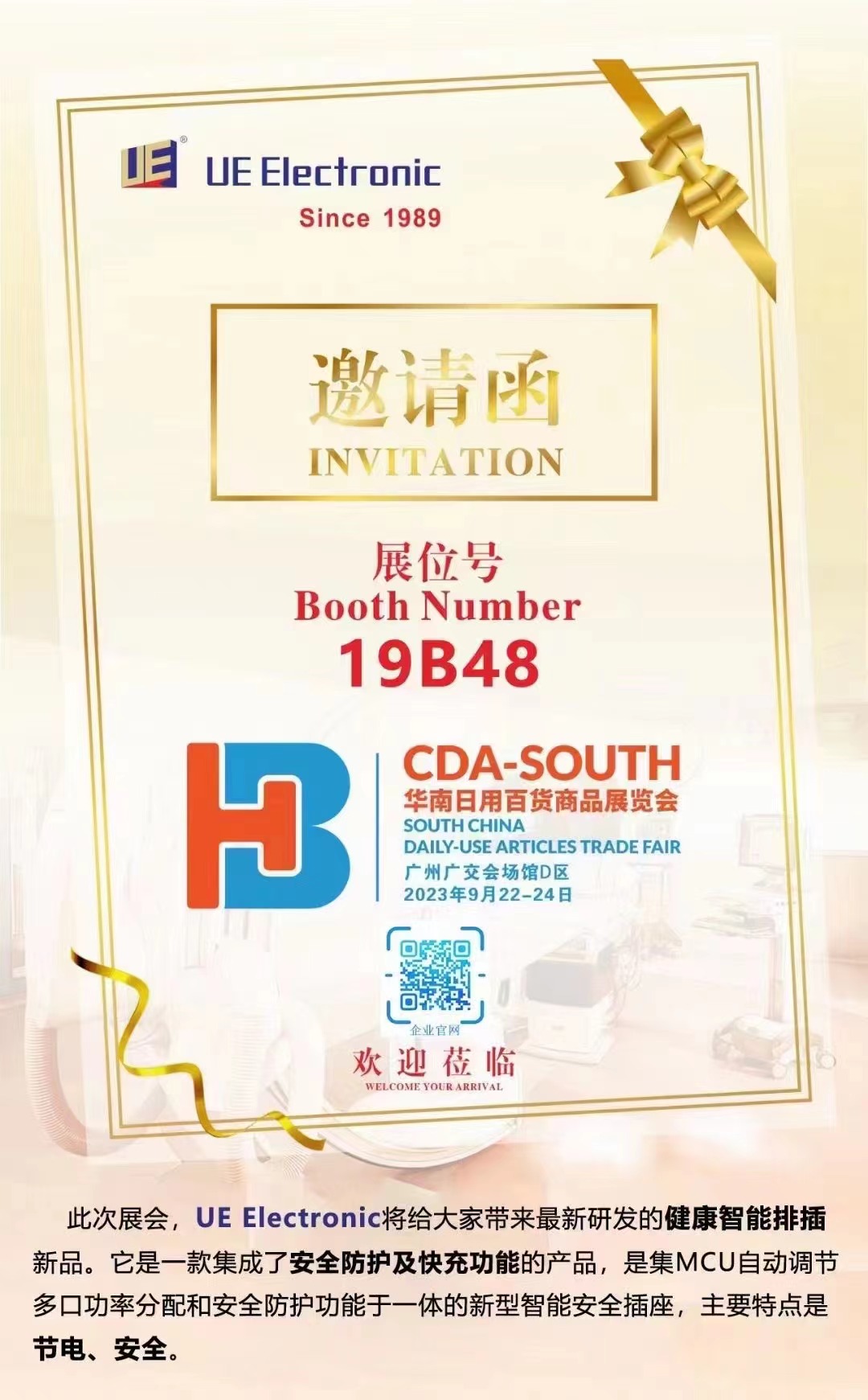 2023中国华南日用百货商品展览会将于9月22-24日盛大举行。届时,UE Electronic 将携电源新品亮相广州广交会馆D区(展位号:19B48)。